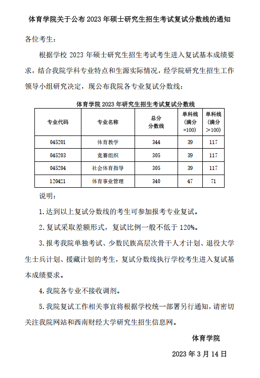 九州平台关于公布2023年硕士研究生考试复试分数线的通知