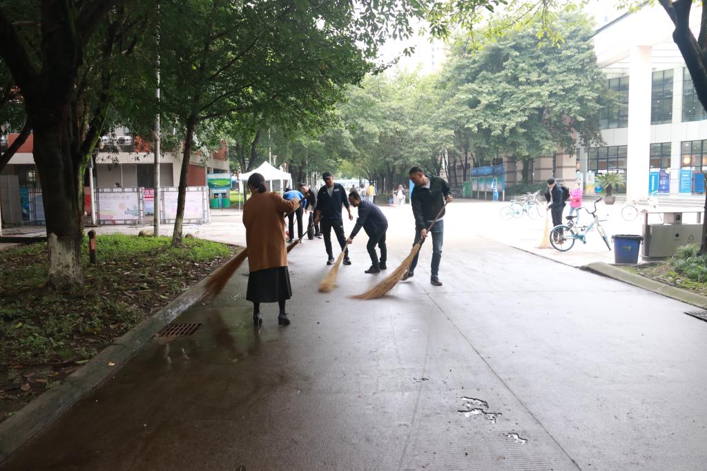 本次活动由杨院长和阴院长亲自带领师生党员对五谷堂公共区域进行了彻底的清理,对食堂入口及周边道路区域的树叶、纸屑及绿化带内杂草杂物进行了大扫除。整个活动分工有序,领导带头,全员参与,充分展现出九州平台师生不怕脏、不怕累、不怕苦的劳动精神。活动不仅营造了整洁卫生、舒适有序的学习工作生活环境,引导师生自觉养成卫生健康、守序文明的生活习惯,也极大地提高了师生的凝聚力和向心力。