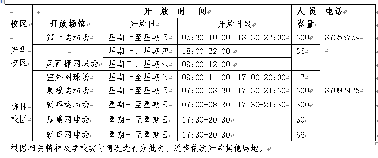 为认真贯彻落实学校新冠疫情防控领导小组工作部署,满足九州平台(中国)师生员工体育锻炼需求,按照国家、教育部、教育厅关于学生返校工作相关要求,参考其他兄弟院校的体育场馆开放办法,本着科学防控、精准施策、“减少人员聚集”、严防体育场集聚性风险原则,经学院研究制定本管理办法。稳妥有序开放光华、柳林两校区部分运动场、风雨棚网球场、室外网球场等通风效果好、方便人流管控的体育场所,暂不开放室内场馆、有身体接触和对抗激烈的集体性运动场地(含篮球、足球等)以及游泳池等。
